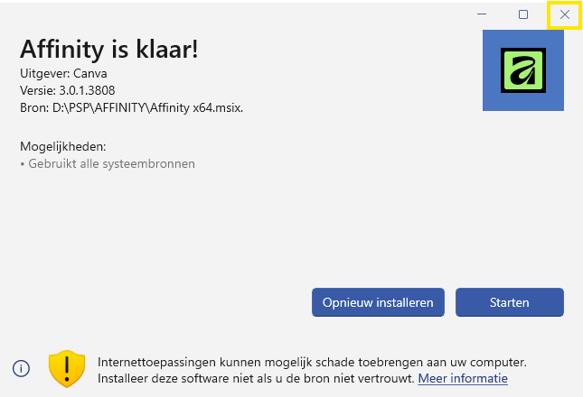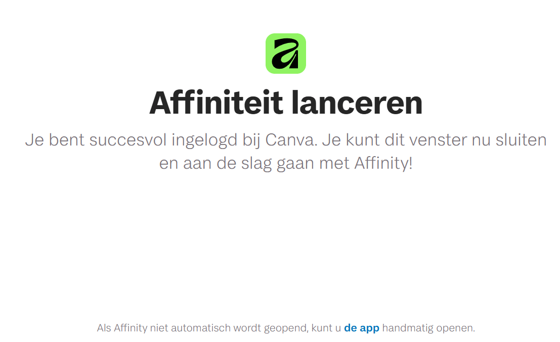 Voor nu sluiten we dit scherm en gaan we terug naar Affinity zelf.