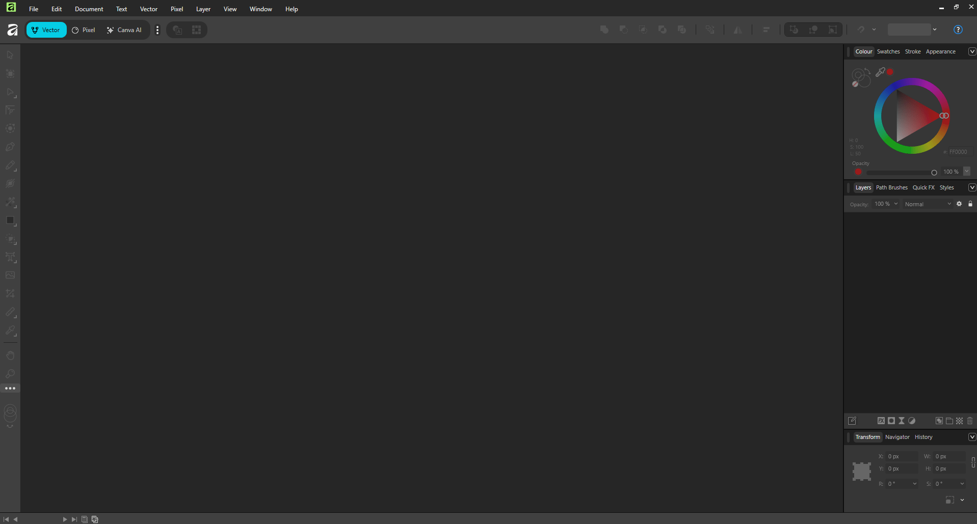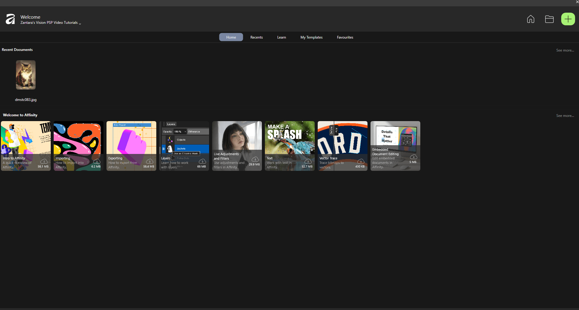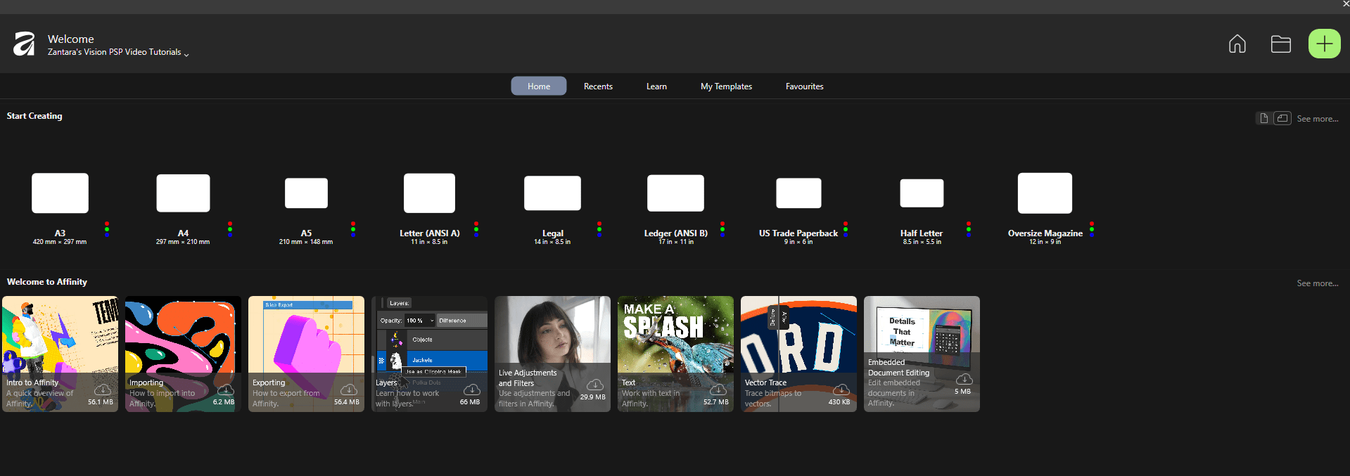 En zo ziet Affinity er na installatie uit. Dit scherm wordt automatisch geopend