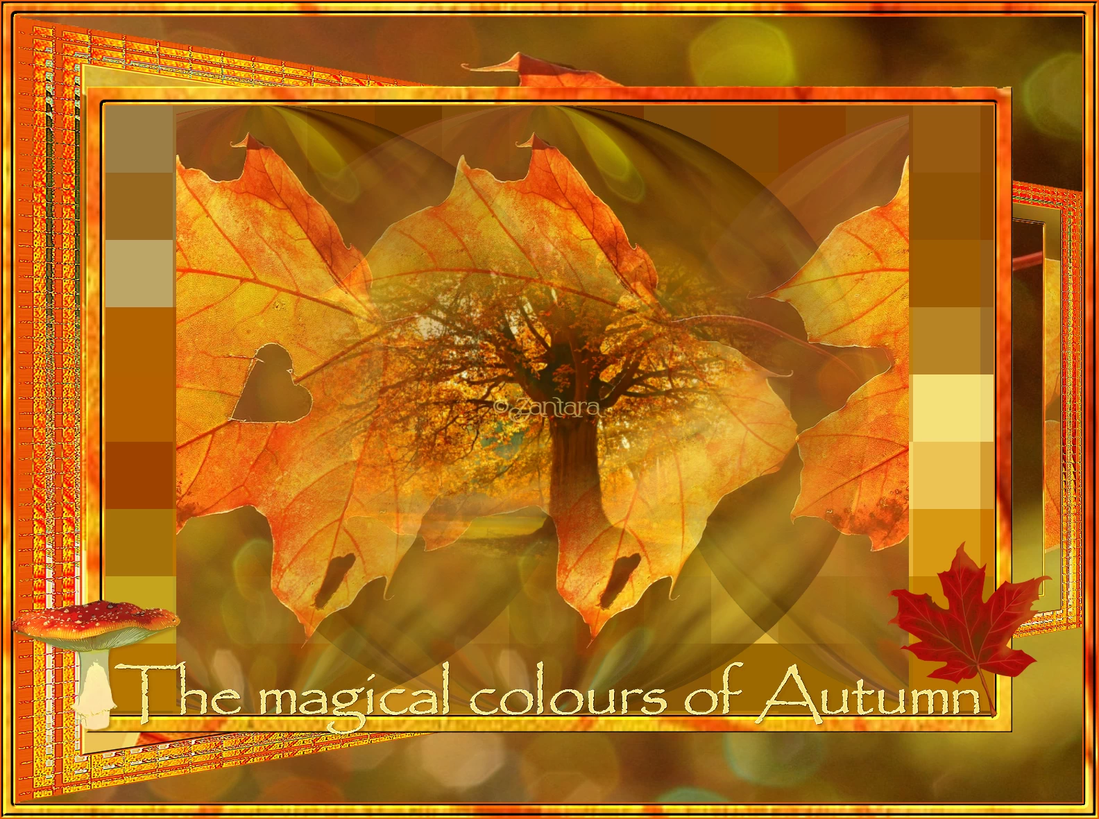 - Terug naar het herfstblad > de selectie is nog actief > CTRL+c > terug naar je creatie > Bewerken > Plakken in selectie