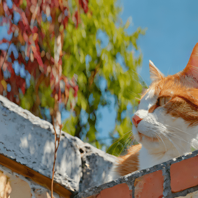 De prompt is een rood-witte kat op een muur met een blauwe lucht en bomen op de achtergrond. Het resultaat is dan dit. Dat is voor mij niet goed genoeg, dus voeg ik een nieuwe prompt toe aan het resultaat.