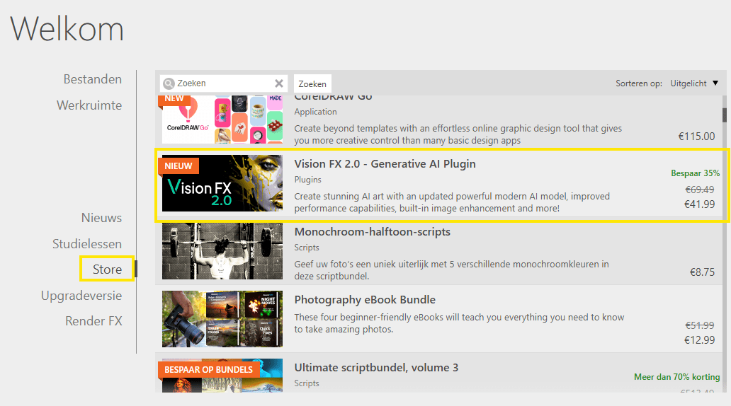 Je koopt Vision FX 2.0 gewoon op de Corel website (klik op de link om naar de website te gaan), net zoals je dat met PSP doet.