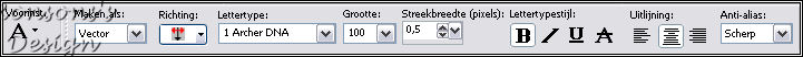 36. Activeer je tekstgereedschap, zoek je font 1Archer DNA, grootte op 100 voorgrondkleur op slot, achtergrondkleur op #2b2d4c