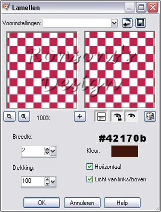 27. Effecten, textuureffecten, Lamellen met deze instellingen: