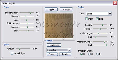 14. Ga naar het filter Fantastic Machines – PaintEngine met deze instellingen en klik op Apply: