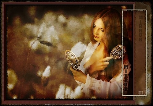 31. Lagen, nieuwe rasterlaag. Ga terug naar je foto “Irene”,afbeelding, spiegelen, bewerken, kopiëren, bewerken en plakken in je selectie. Selecties, selecteer niets.