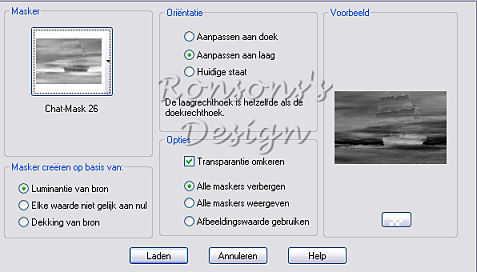 - Lagen, maker laden/opslaan, masker laden van schijf -> chat mask 26 met onderstaande instellingen