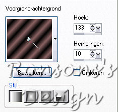- Maak een verloop met de volgende kleuren en onderstaande instellingen: