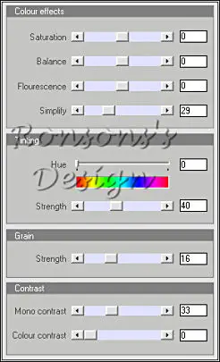 61. Aanpassen, kleurtoon en verzadiging, met dezelfde instellingen als hiervoor.