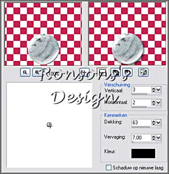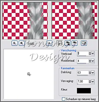 67. Effecten, 3D effecten, slagschaduw met deze instellingen: 3, 2, 63, 7, kleur zwart